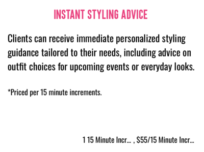 Clients can receive immediate personalized styling guidance tailored to their needs, including advice on outfit choices for upcoming events or everyday looks.